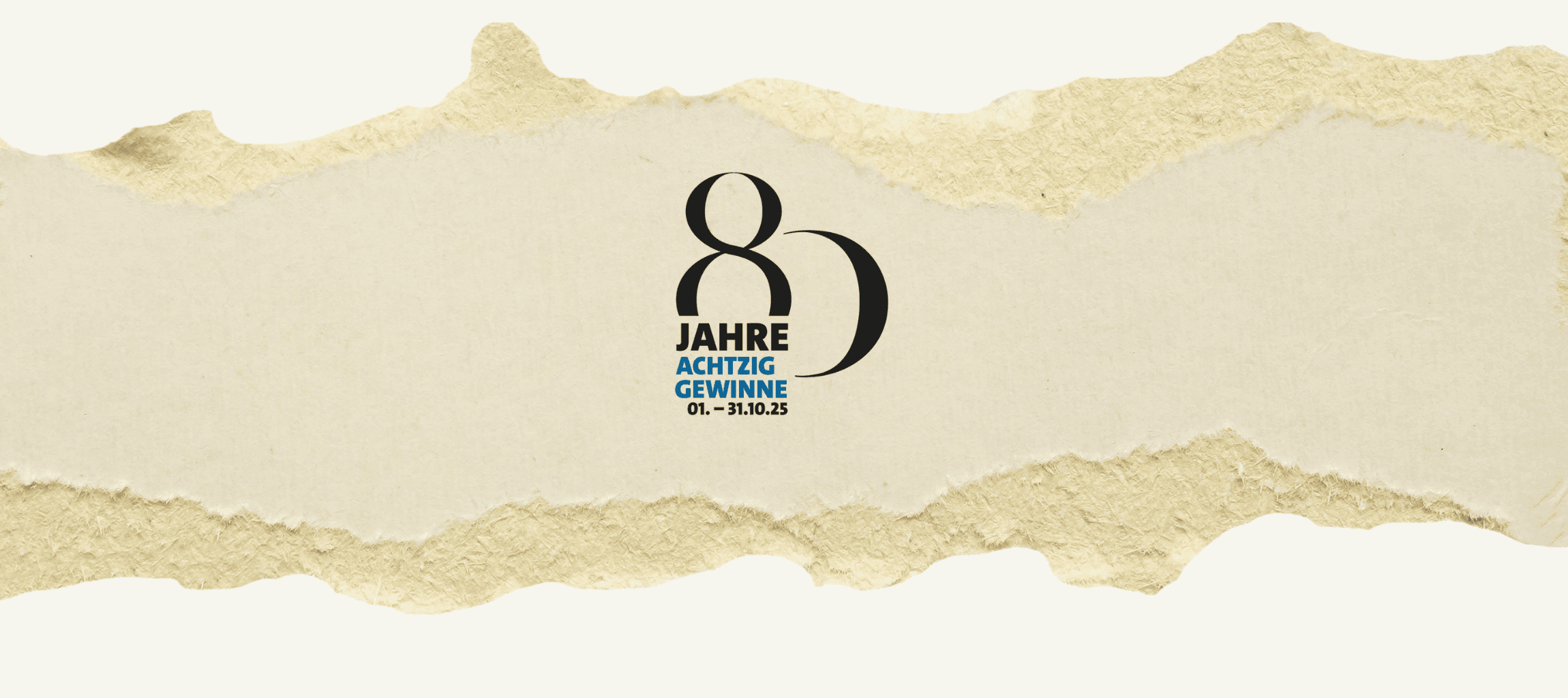 All diejenigen, die im Zeitraum vom 1.10. – 31.10.2025 an unserem Gewinnspiel „Kombinieren und Kassieren“ teilnehmen, sind ganz automatisch im Lostopf unseres großen Jubiläumsgewinnspiels. Hier haben die Teilnehmer noch einmal die Chance auf einen von 80 Sonderpreisen. Hier stellen wir Ihnen die vier Hauptpreise vor.